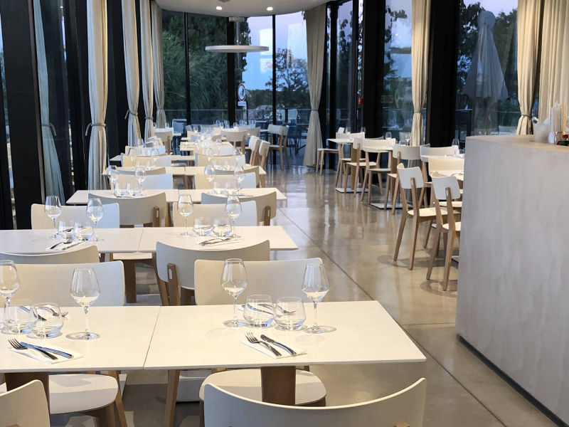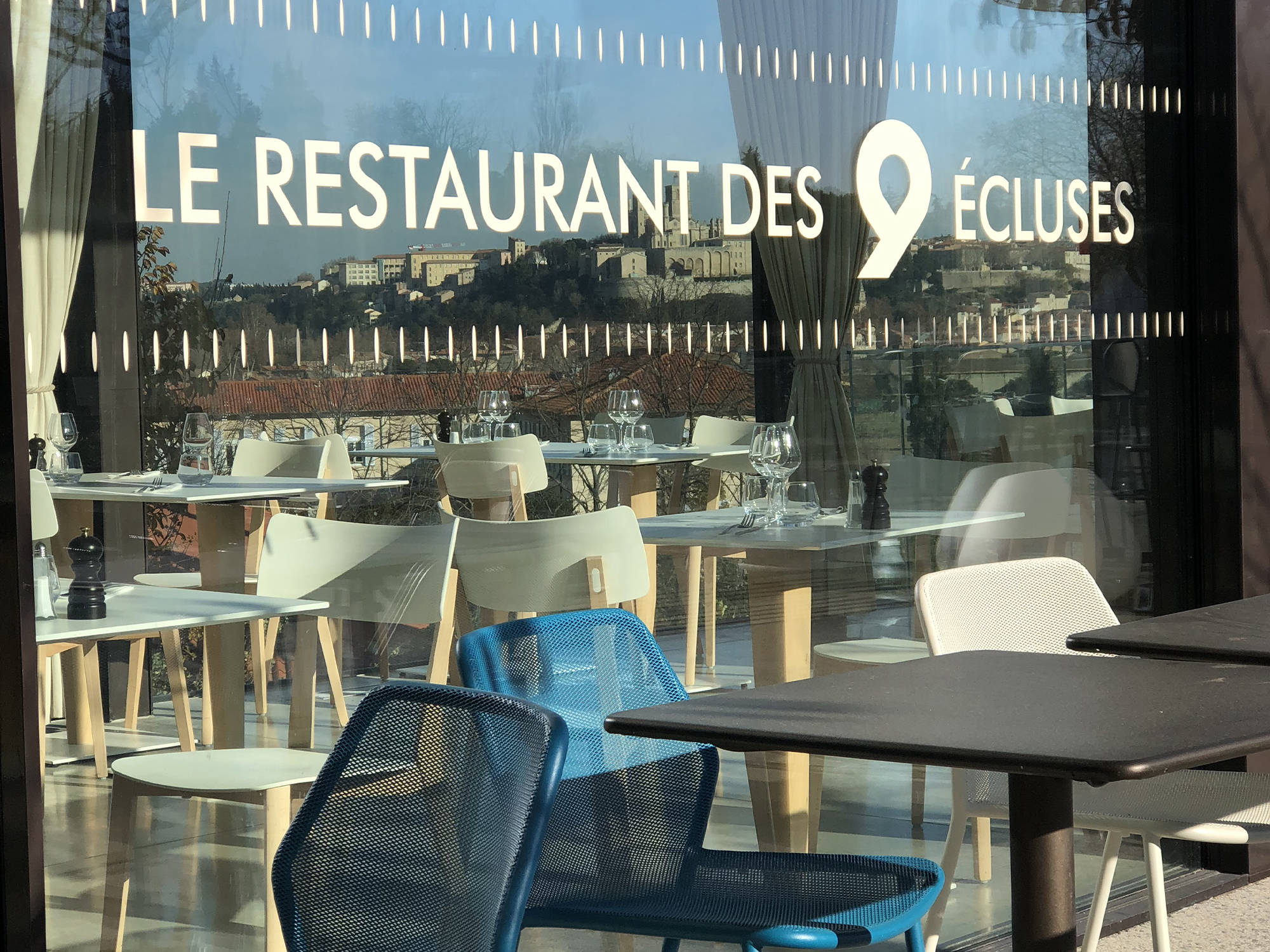Avec sa majestueuse verrière en forme de proue de péniche, la salle du restaurant domine d'un côté la plaine de l'Orb et l'acropole biterroise, et de l'autre l'échelle d'écluses de Fonseranes.